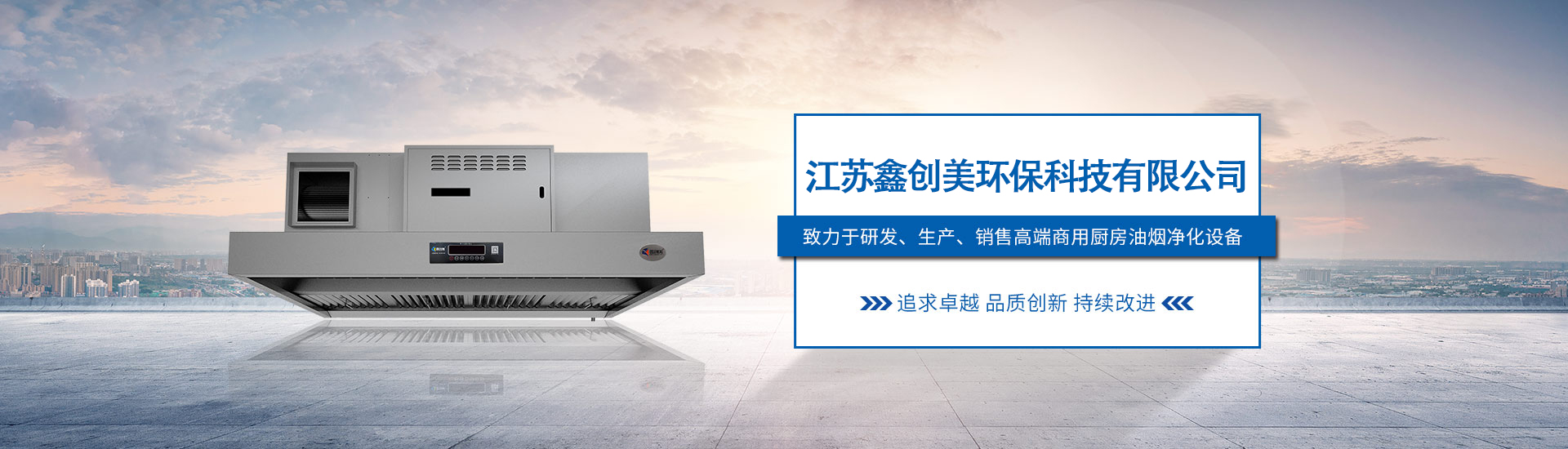 六朝古都,虎踞龍盤。在這個(gè)歷史悠久,經(jīng)濟(jì)繁榮的金陵大地上,江蘇鑫創(chuàng)美環(huán)??萍加邢薰咀溆谀暇﹦?chuàng)新名城核心區(qū)--江寧,公司自成立以來一直致力于研發(fā)、生產(chǎn)、銷售高端商用廚房油煙凈化設(shè)備,公司已通過中國(guó)環(huán)境保護(hù)產(chǎn)品認(rèn)證(CCEP)、ISO9001質(zhì)量管理體系、ISO4001環(huán)境管理體系、BSOHSAS18001:2007職業(yè)健康安全管理體系認(rèn)證,等多項(xiàng)認(rèn)證,產(chǎn)品嚴(yán)格執(zhí)行 《固體污染源排氣中顆粒物測(cè)定與氣態(tài)污染物 采樣方法》 (GB/T16157-1996)、《餐飲業(yè)油煙排放標(biāo)準(zhǔn)》(GB18483-2001)、《工業(yè)企業(yè)廠界環(huán)境噪聲排放標(biāo)準(zhǔn)》 (GB12348-2008)、《污水綜合排放標(biāo)準(zhǔn)》GB8978-1996,還獲得發(fā)明專利、實(shí)用新型專利等多項(xiàng)專利,是國(guó)家高新技術(shù)企業(yè)。